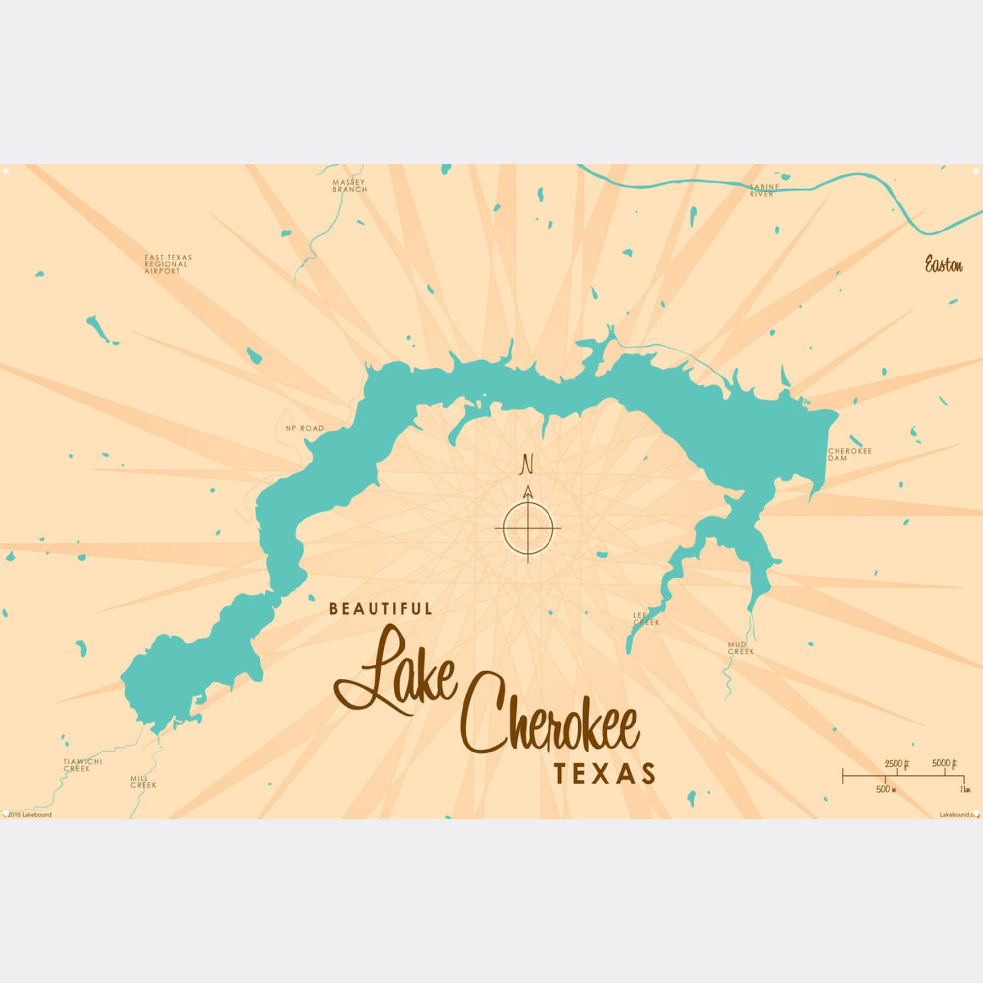 Lake Cherokee Texas, Metal Sign Map Art – Lakebound®