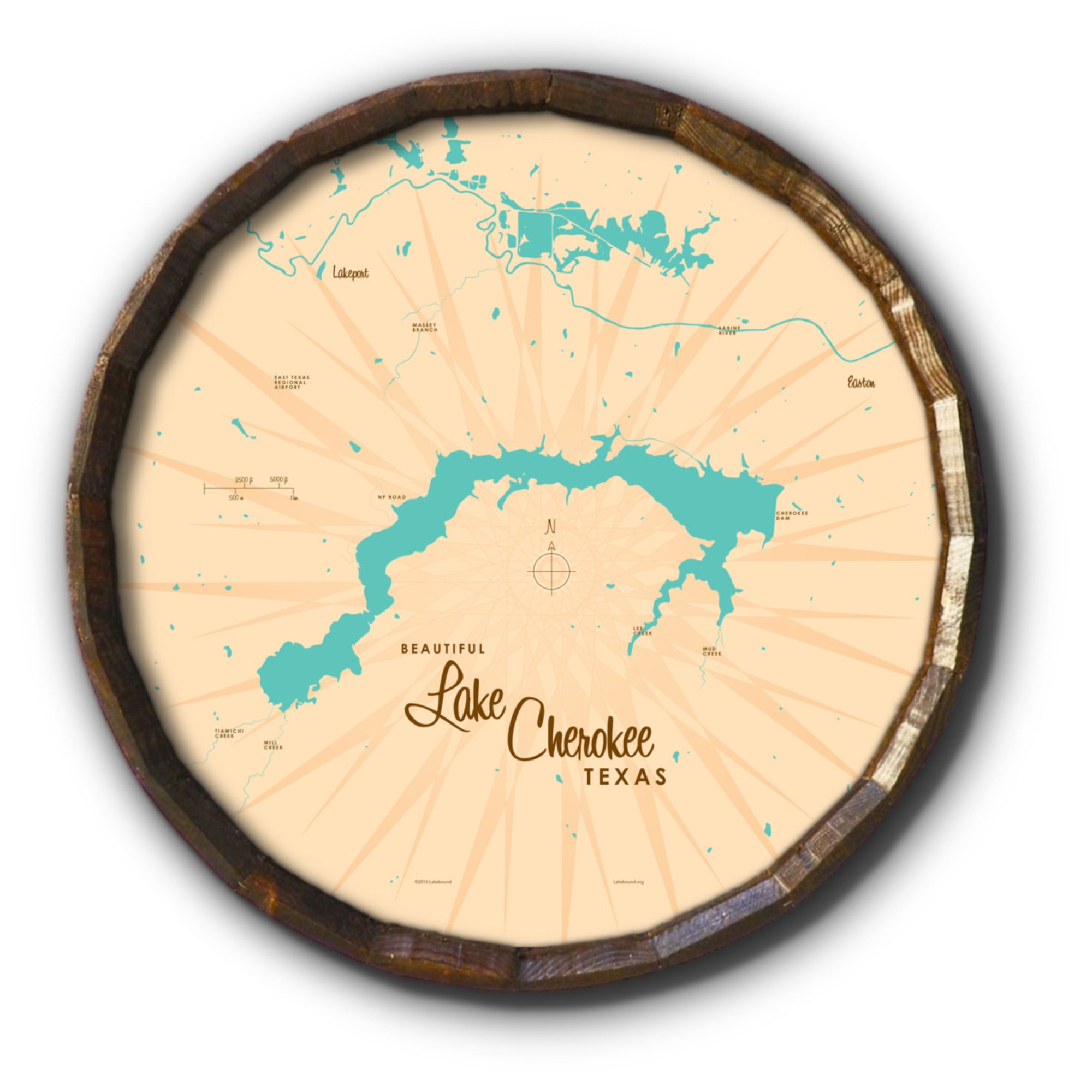 Lake Cherokee Texas, Barrel End Map Art – Lakebound®
